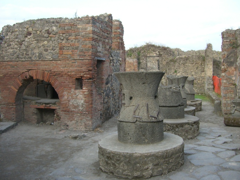 他の遺跡ではパン屋もあり、店内に粉を挽く石臼や焼き窯[写真掲載]も確り残っている。
