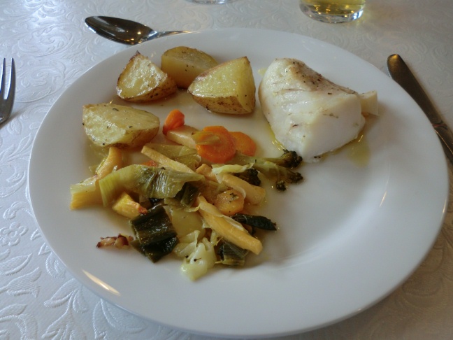 サラダとタラのムニエルプテト添え、そしてデザートと質素なランチだが、味はまずまずだった。