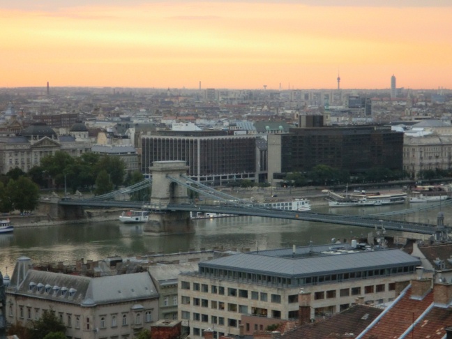 食後の散歩で、丘の上から見下ろすドナウ川にかかるくさり橋や国会議事堂がライトアップされ、正にドナウの真珠とはこの事だと感激した。