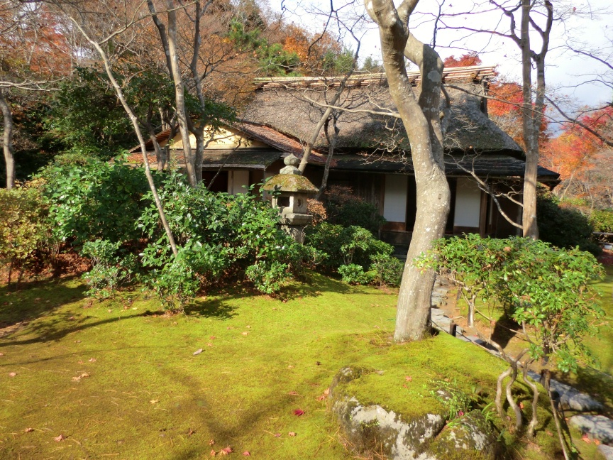 落ち葉が舞う庭でお抹茶を頂き、風雅な気分になれた。