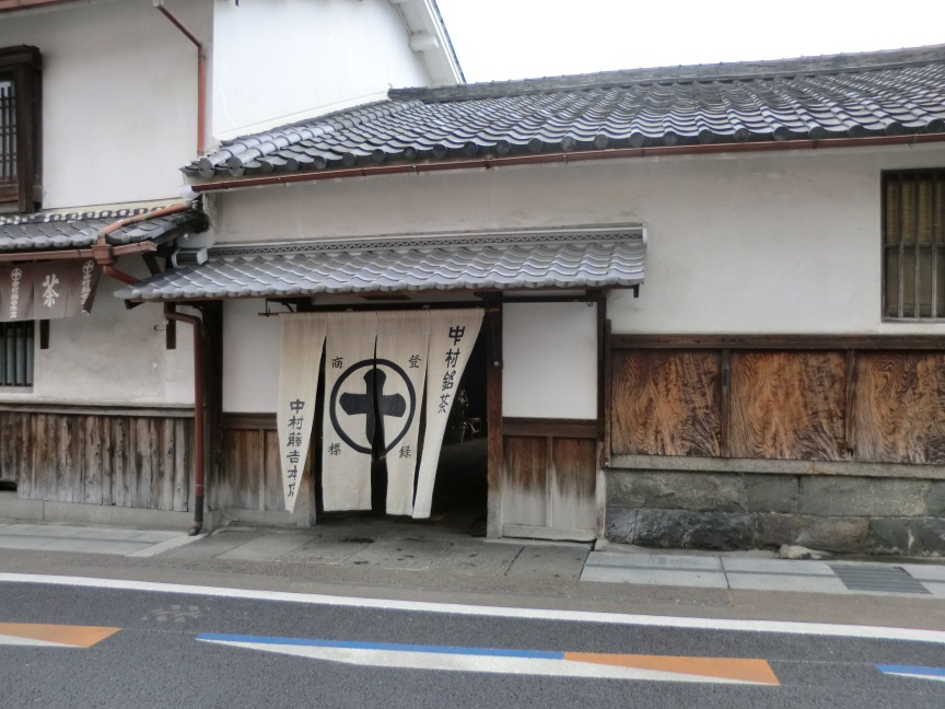 JR宇治駅に向かって帰る途中、蔵造の屋敷が目にとまり、「中村藤吉本店」と暖簾が出ている。