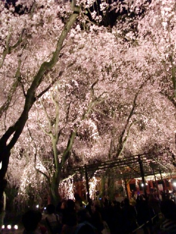 時間も7時30分頃となり、急いで平安神宮に戻り、コンサート庭園に入り紅しだれの夜桜を楽しんだ。