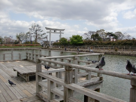 天満宮の大鳥居をくぐると八条池があり、周りの桜はほとんど散って葉桜と変わりつつある。