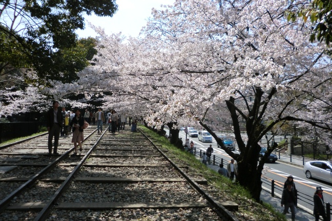 4月10日 日曜日、待ちわびた桜が満開となり朝早くより京都に行く。 丸田町駅を降りて鴨川に流れ込む琵琶湖疎水の満開の桜の並木道を散策する。 平安神宮を経て南禅寺辺りまで続く、それから琵琶湖疏水記念館より桜の名所インクラインを通って蹴上まで桜が続く。