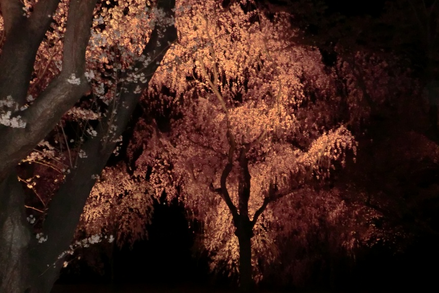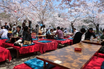今日は雲一つない晴天で桜は更に見頃となり、最近の出来事で沈み気味だった気持ちも久しぶりに清々しい気分になり、一日も早く被災地の皆様が復活されるよう遠くより祈るばかりでございます。 それから円山公園の枝垂れ桜を見に行きましたが、以前ほどの風格は無くなっているが一生懸命咲いているように見える。周りは桜見物や宴会で陽気に一杯やっている。 私たちも桜の下に設けられた毛氈を敷いた席で一杯頂いた。 花より団子とは良く云ったものである。 お代は結構高いのは承知していたが、更に席代500円を取られたのには少し気分を害した。 怒るほどでもないが何処かに席料500円と表示をして欲しいものだ。