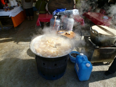 参道には大鍋で湯気を上げて大根を煮ている「厄除け大根・500円」と書いてる。