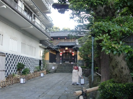 カステラの福砂屋本店を通り、坂本龍馬や岩崎弥太郎が通ったという丸山地区の「料亭引田屋」の玄関先を訪れる。