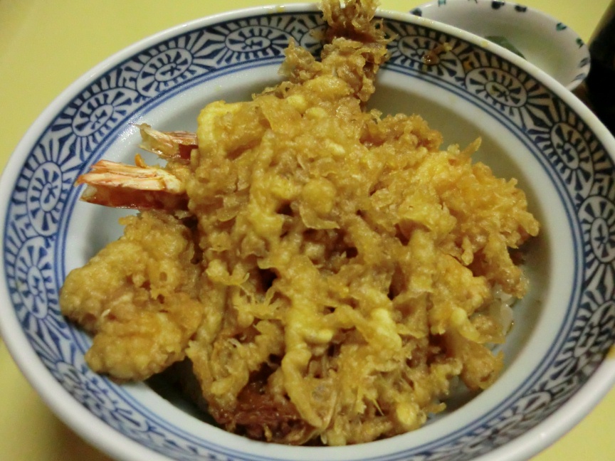 確かに黄色く揚げていて濃いめの出汁がかかり、見た目はイマイチだが、コロモも出汁が利いてしっとりした食感と海老のぷりぷり感。