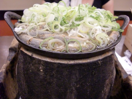 鉄なべに敷き詰めたどぜうの上に葱を山盛りに乗せると美味しいと言う。