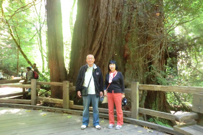 朝一番よりバスにてゴールデンゲートブリッジを渡り、北西へ27キロほどのミュアウッズ国定公園へ行く。