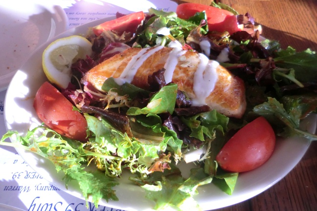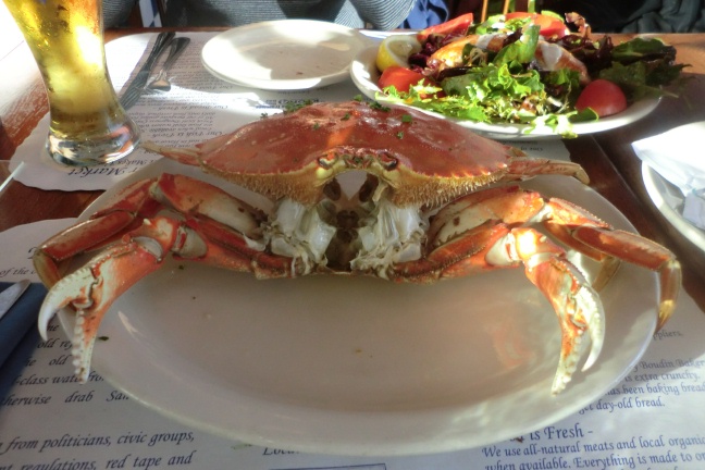 早速、この地域の名物のカニとサーモンサラダを頂く。