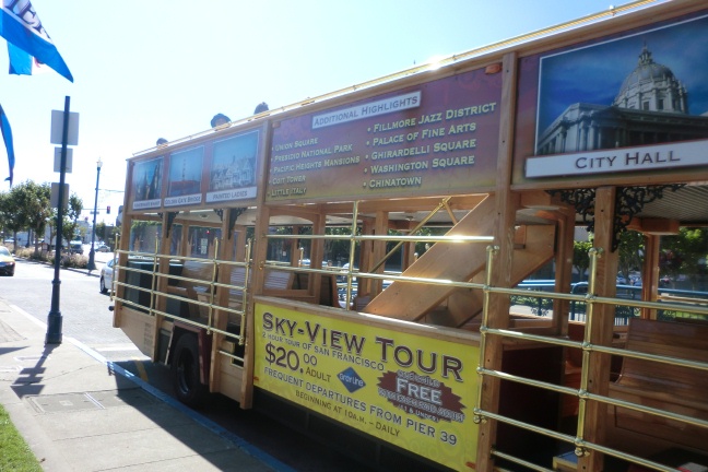 最後のフィッシャーマンズワーフ滞在となり、近くの水族館や2階建てのオープンバスで市内観光する。