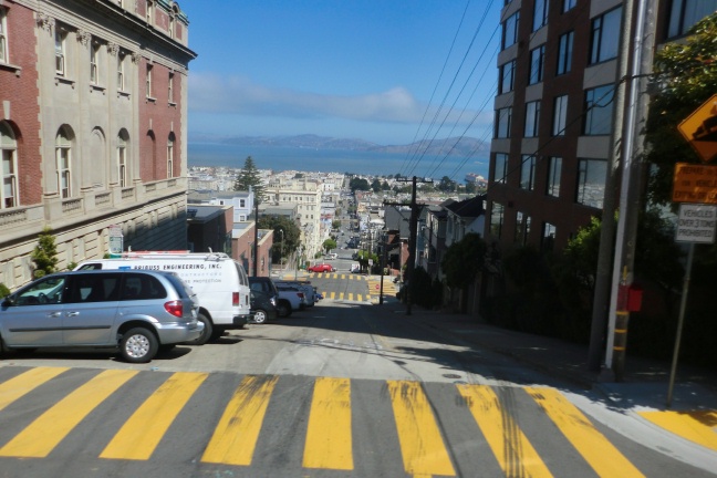 ブロードウェイやノブヒル辺りは高級住宅街であり、坂道を下る方向はサンフランシスコ湾で、映画でよく観たカーチェイスのシーンを思い出す。
