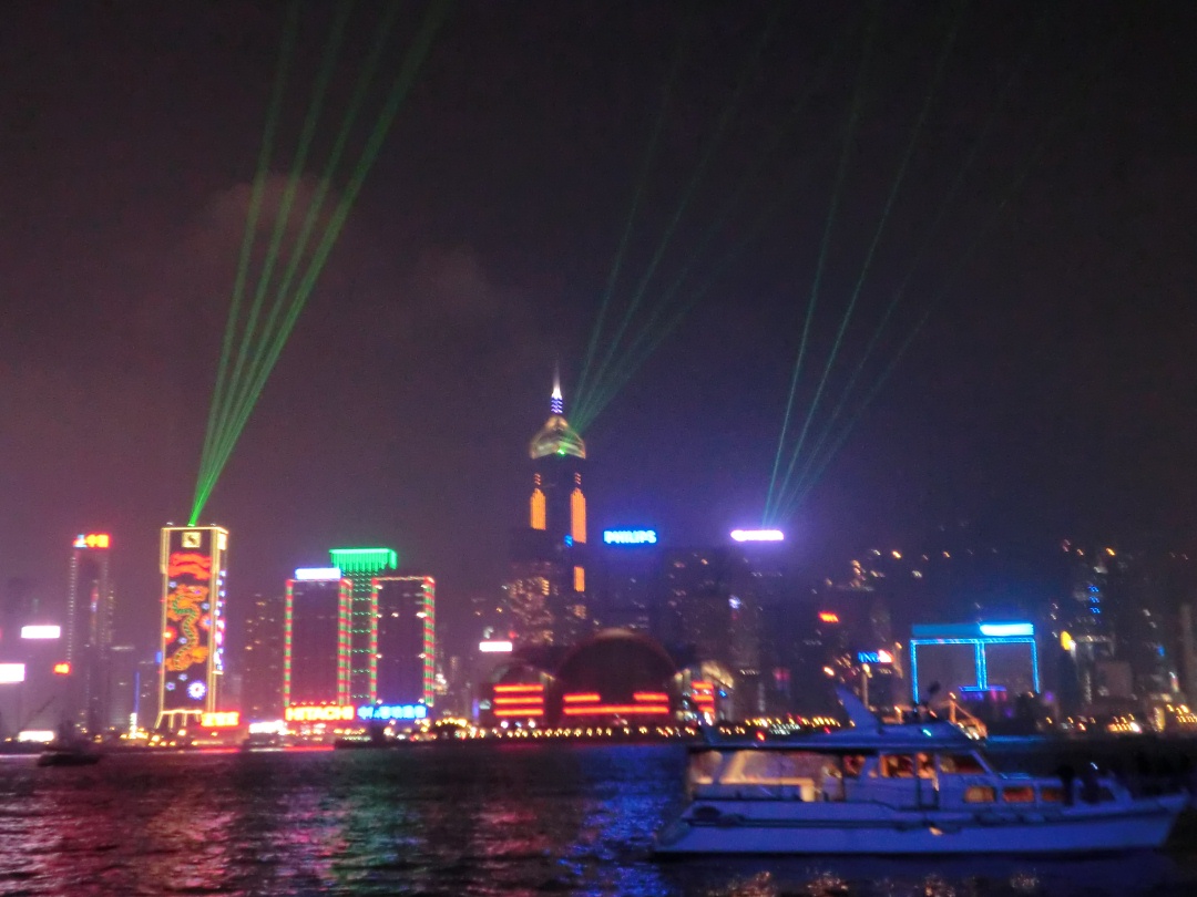 対岸の香港島のビル街より音楽に合わせてレーザーが放たれるショーは、香港の夜を盛り上げる楽しい演出でした。