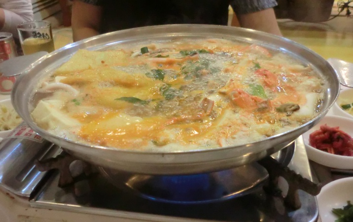 夕刻となり、ツアーで付いている夕食の海鮮鍋を食べたが、珍しくもなく味もイマイチだった。