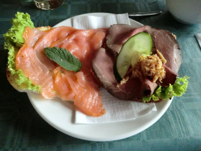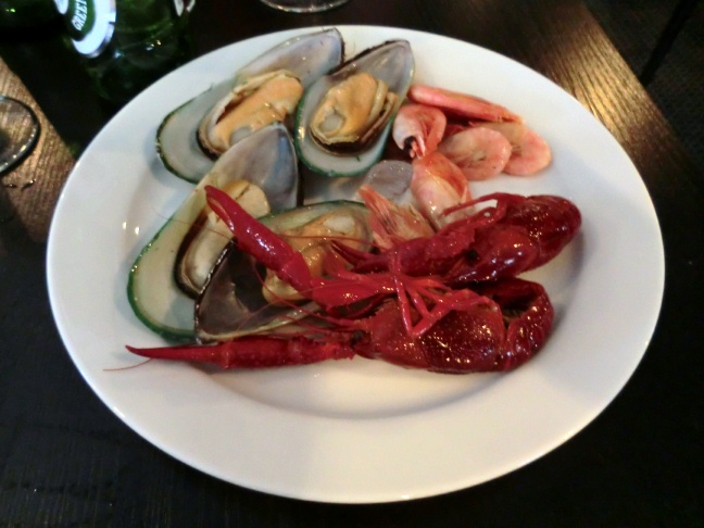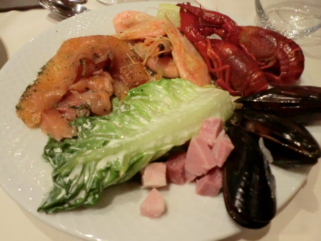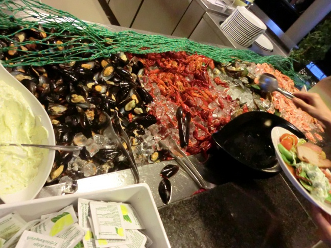 スモークサーモンは勿論、たっぷりの海鮮料理がそろっており、その中でも8月のザリガニは美味という。しっかり食べて超満腹となった。