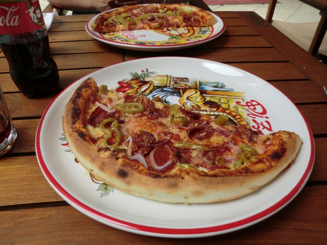 私達もピザを食べたく路上の席に座り、ハンガリーには欠かせないパプリカ入りのピザを一枚注文する。