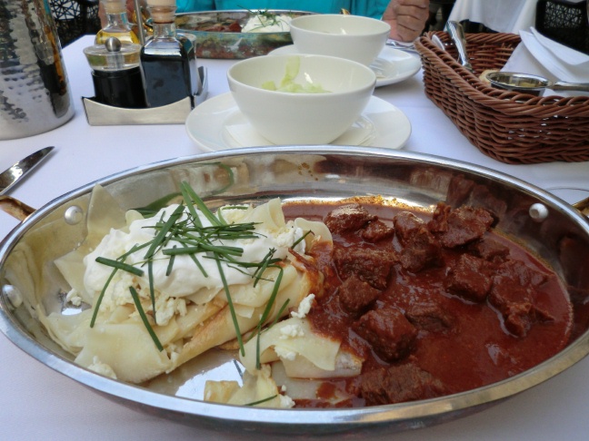 夜はハンガリーの民族舞踊のショーを予約しているので、その前に街中の少しお洒落なレストランに入った。
