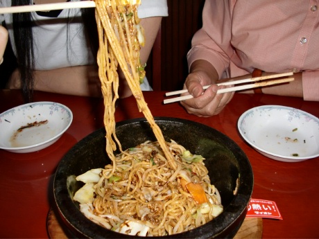 具沢山のサラダも美味しいが、創作料理の石焼坦坦焼そばが結構いけました。