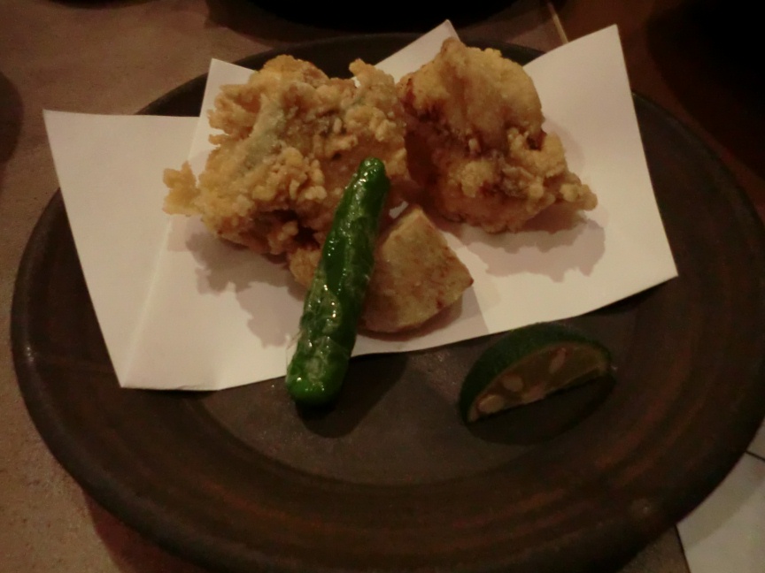 次に出てきたフグの唐揚げ。さっぱり感から食欲が増す揚げ物が嬉しい。