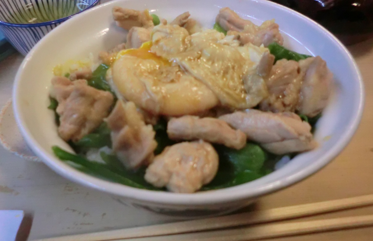 間もなく運ばれてきた親子丼は、半熟にした卵を中心に乗せ、その周りを三河の赤鶏のぶつ切りが無造作に乗っている。