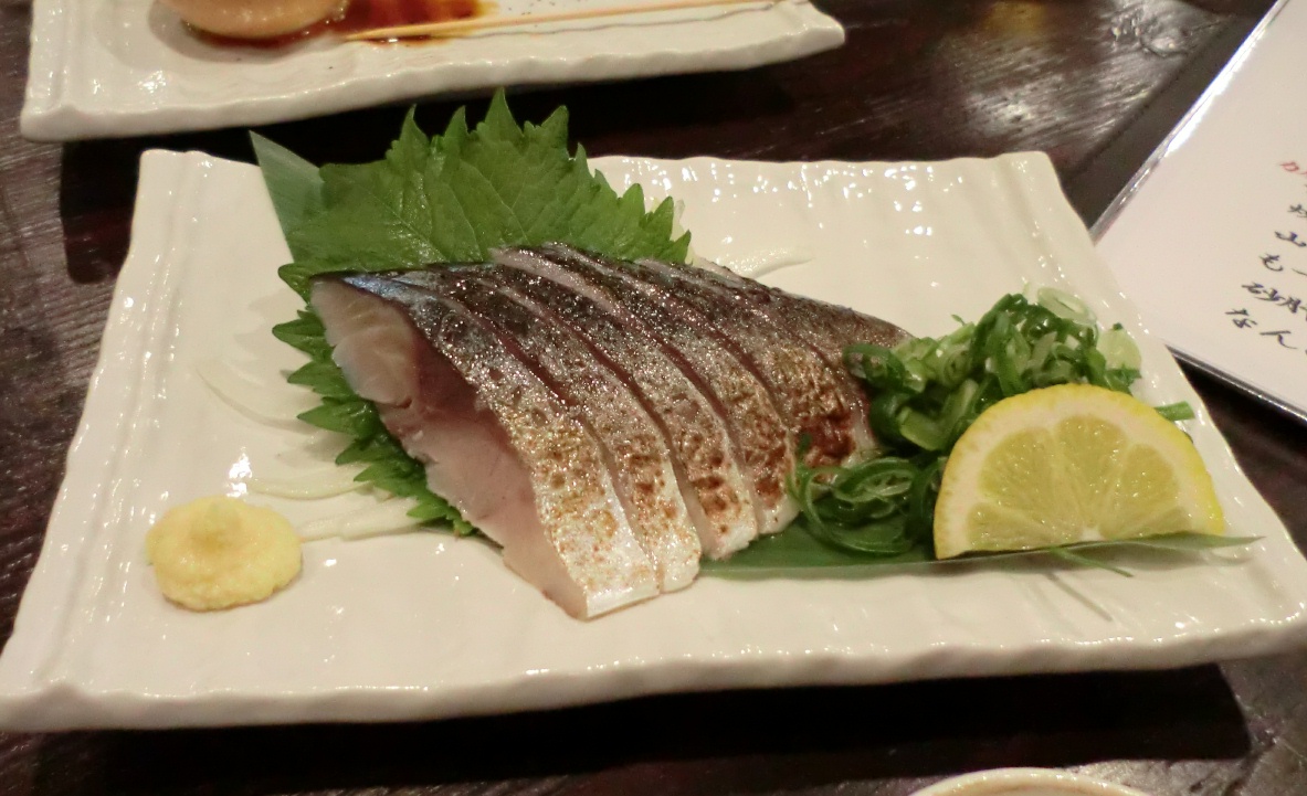 鯖のきずしは新鮮にも香ばしさがあり鯖独特の旨味に焼酎はどんどん進む。