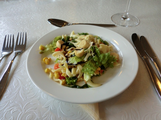 サラダとタラのムニエルプテト添え、そしてデザートと質素なランチだが、味はまずまずだった。