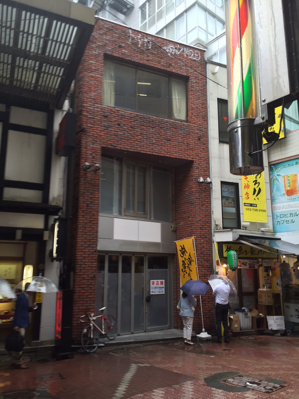 大雨が降る中、そんなことを思いながら、まずは得意先が所有している天神の新天町商店街の物件を2件下見。